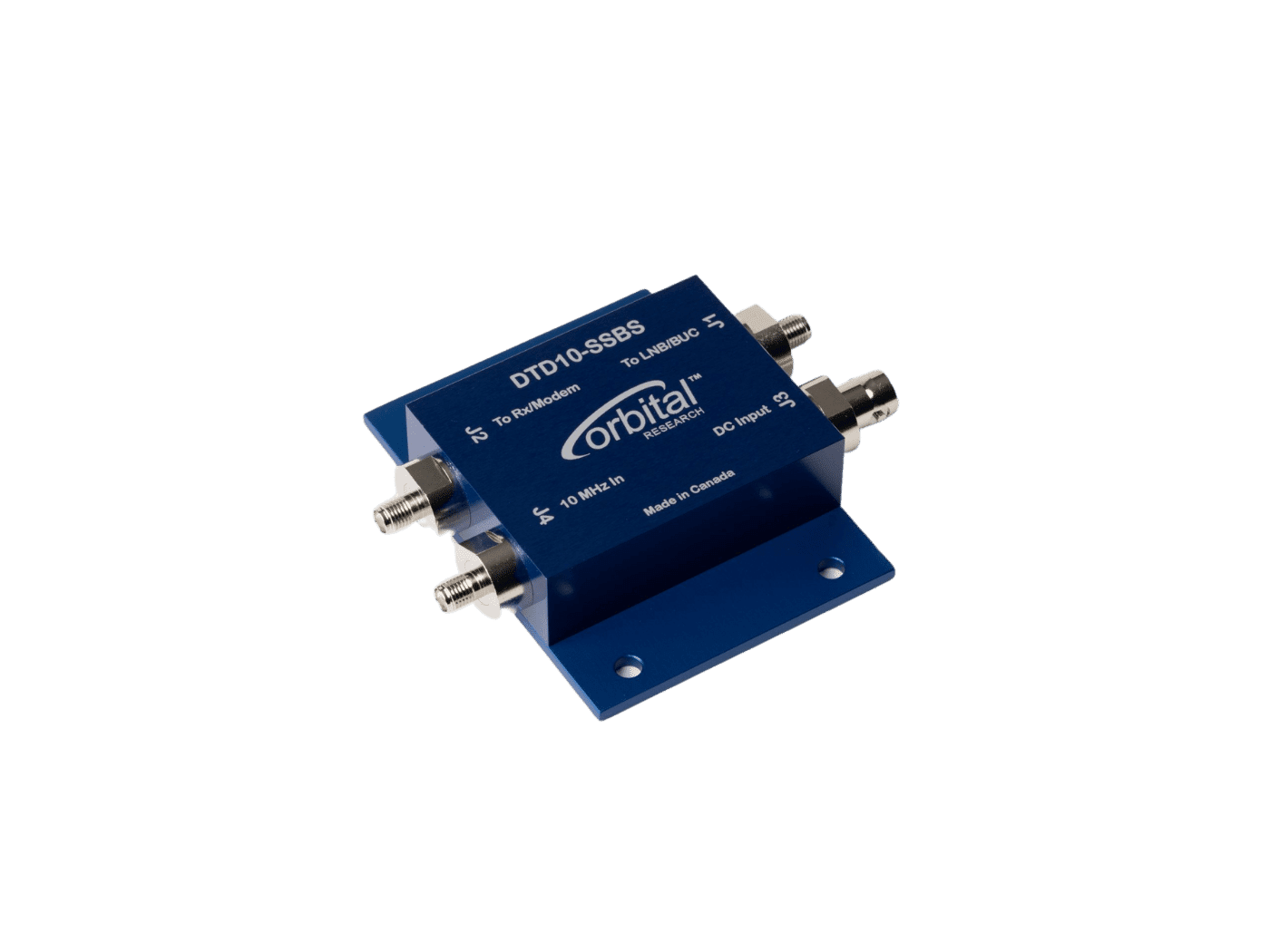 The Orbital DC Thru Diplexer (DTD-10) is a bias tee thruplexer that inserts a high-quality 10 MHz source into your LNB or BUC – in addition to passing both L-band and DC power from the modem with very low insertion loss. This small and compact device is easy to mount, can be used outdoors, and can be customized with any connector.